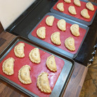 15- Place onto a non stick baking tray, leaving space between each pasty. Brush thoroughly with beaten egg.